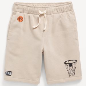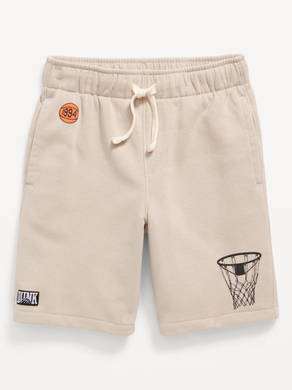 Fleece Jogger Shorts for Boys (At Knee): elasticized waistband, interior drawstring, on-seam welt pockets, #685948