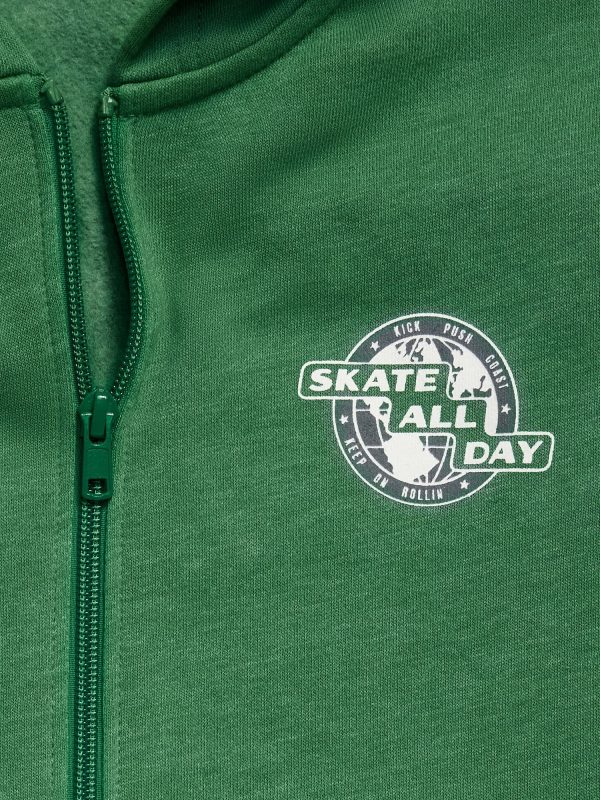 Fleece Zip-Front Hoodie for Boys: built-in hood, long sleeves, full length zipper, hand-warming pockets, banded hem, graphic at front or all-over pattern, #695612