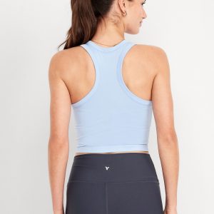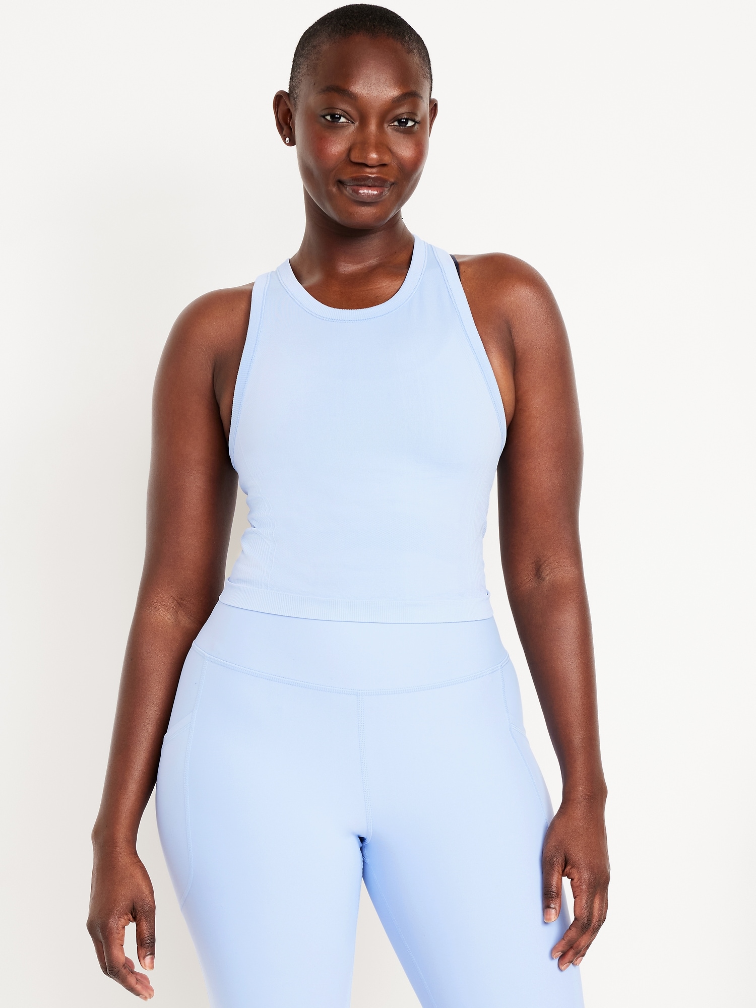 Fluid Seamless Fitted Crop Tank Top: Featuring Fluid Seamless, for breathable, barely-there feels.rib-knit panels at sides and back, crew neck, racerback, go-dry wicks moisture, #848722
