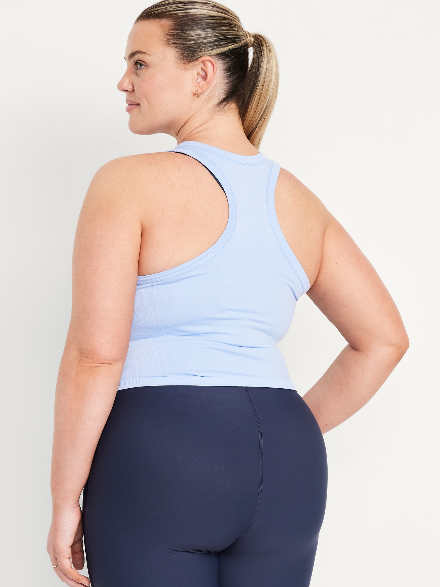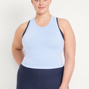 Fluid Seamless Fitted Crop Tank Top: Featuring Fluid Seamless, for breathable, barely-there feels.rib-knit panels at sides and back, crew neck, racerback, go-dry wicks moisture, #848722