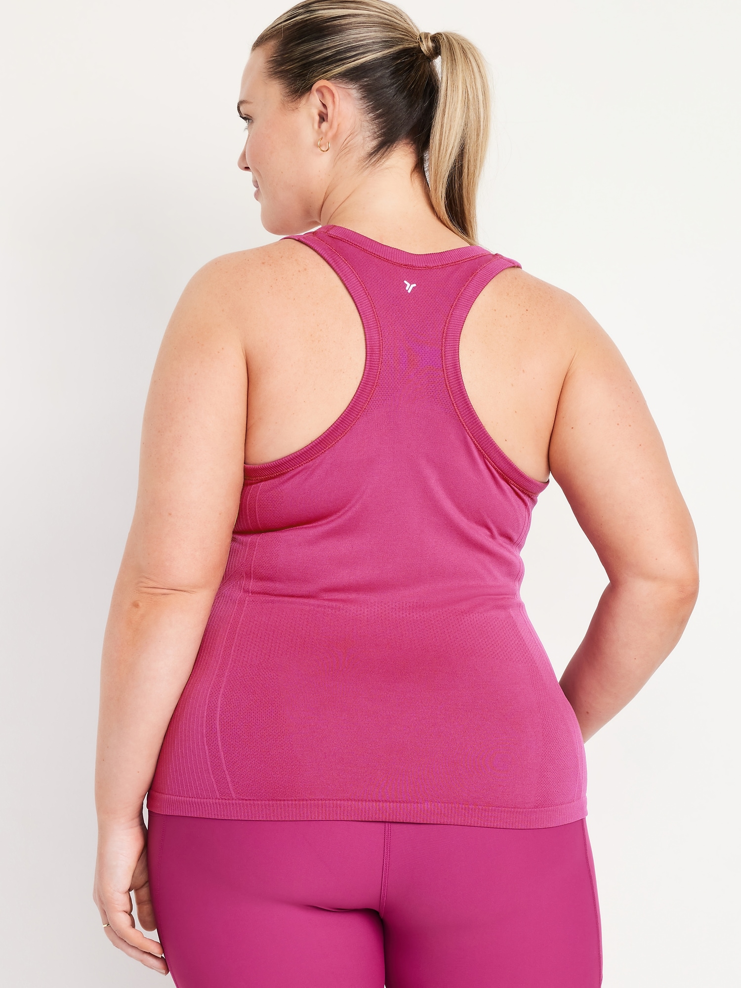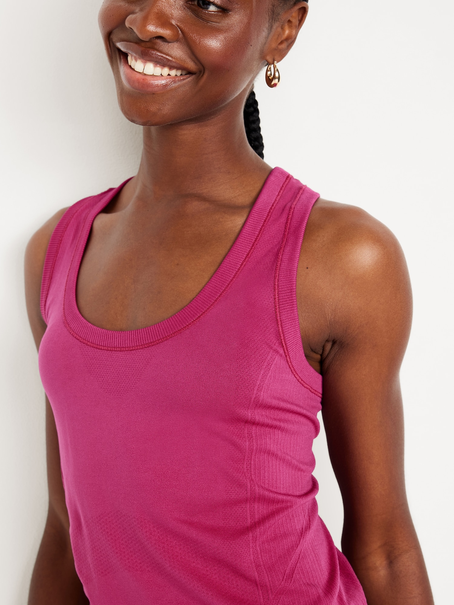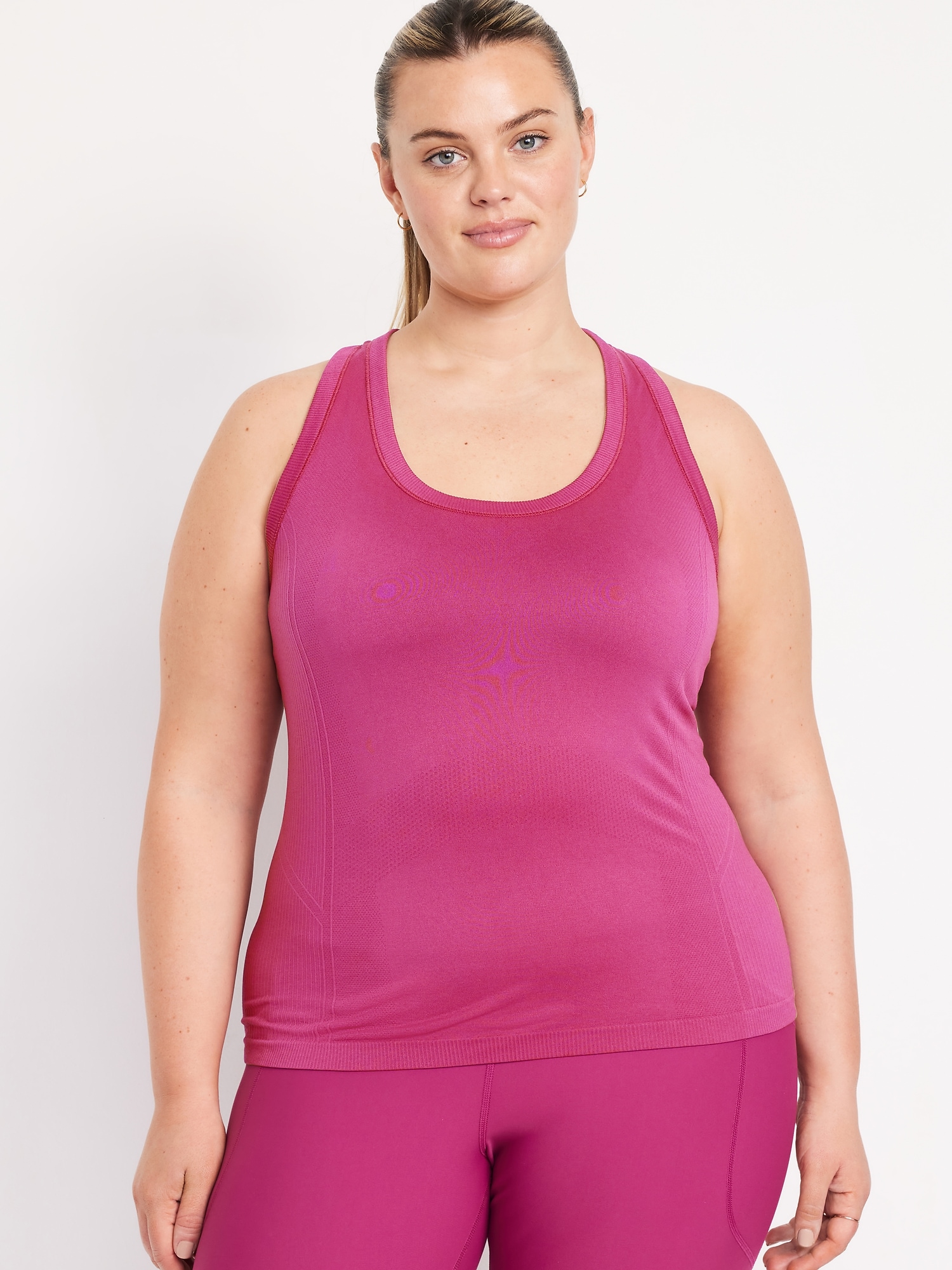 Fluid Seamless Fitted Tank Top: Featuring Fluid Seamless, for breathable, barely-there feels.rib-knit panels at sides and back, scoop neck, racerback, go-dry wicks moisture, #848693