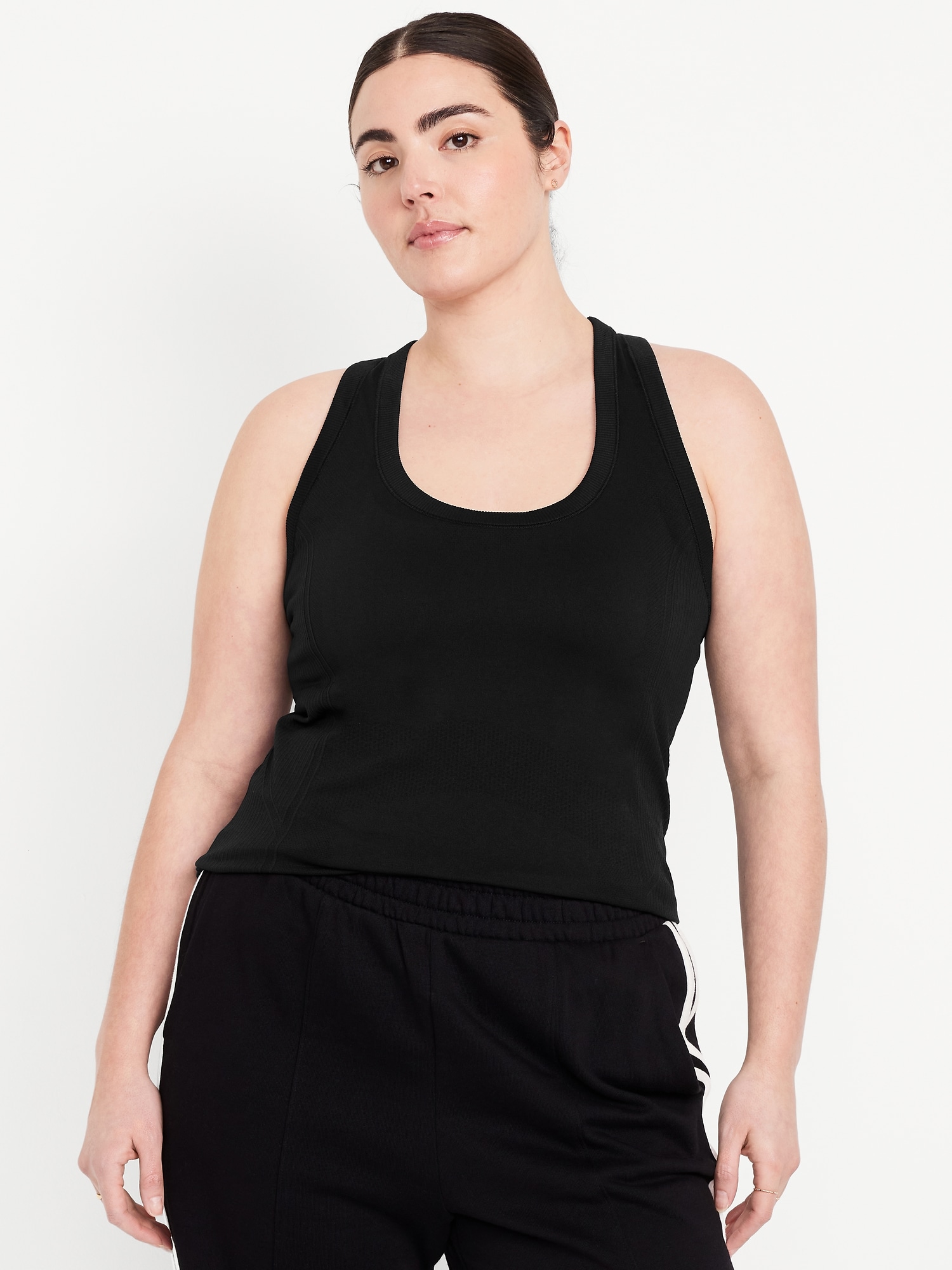 Fluid Seamless Fitted Tank Top: Featuring Fluid Seamless, for breathable, barely-there feels.rib-knit panels at sides and back, scoop neck, racerback, go-dry wicks moisture, #848693