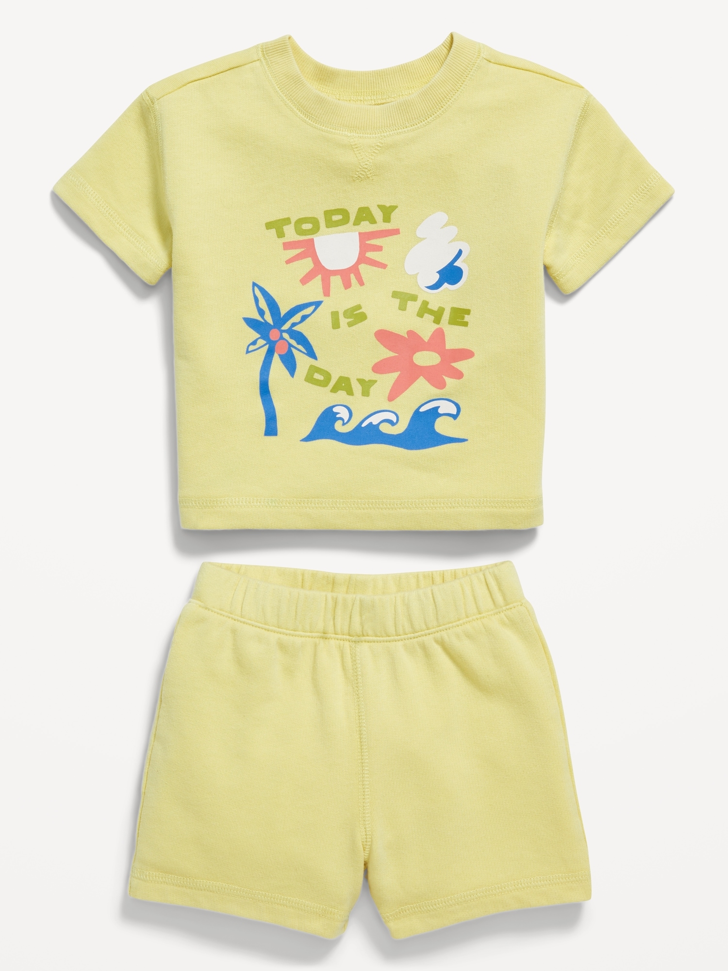 French-Terry Graphic Top and Shorts Set for Baby: crew neck, short sleeves, graphic at front, matching shorts, elasticized waistband, #761914