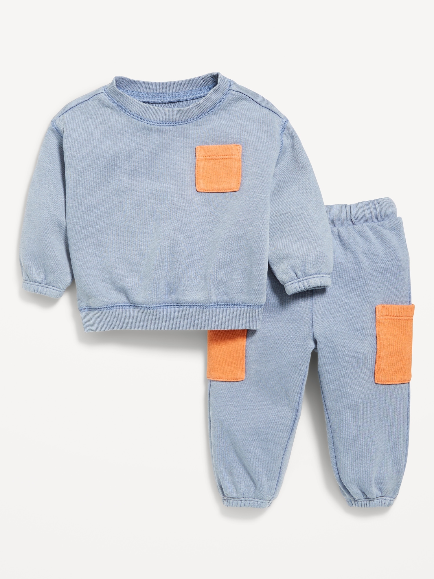 French-Terry Pocket Sweatshirt and Sweatpants Set for Baby