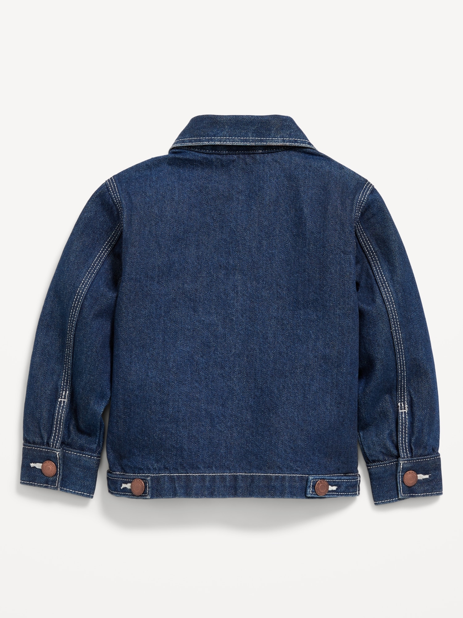 Full-Zip Jean Barn Coat for Toddler Boys: pointed collar, long sleeves, zippered pocket at chest, welt pockets, full length zipper, #752802