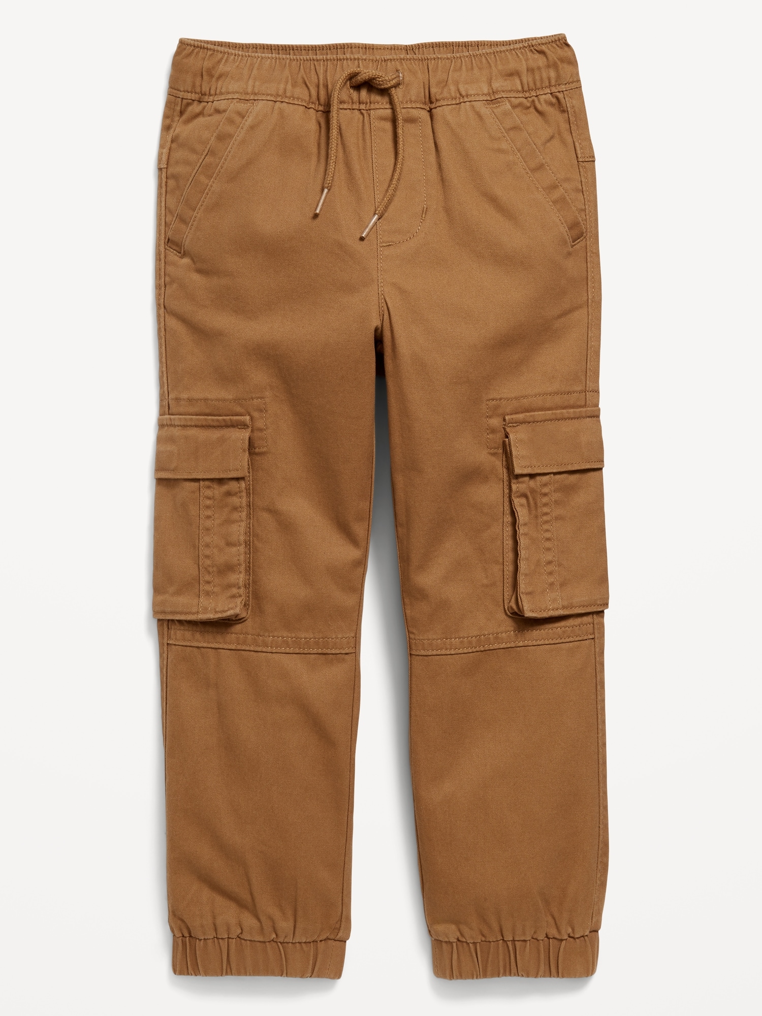 Functional Drawstring Cargo Jogger Pants for Toddler Boys: Elasticized waistband, with adjustable drawstring., Diagonal pockets., Single welt pocket at back., Adhesive secure-close flap cargo pockets at each leg., Soft cotton twill., Easy pull-on style., #752597