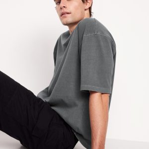 Garment-Dyed Cropped T-Shirt: rib-knit crew neck, short sleeves, #719209