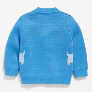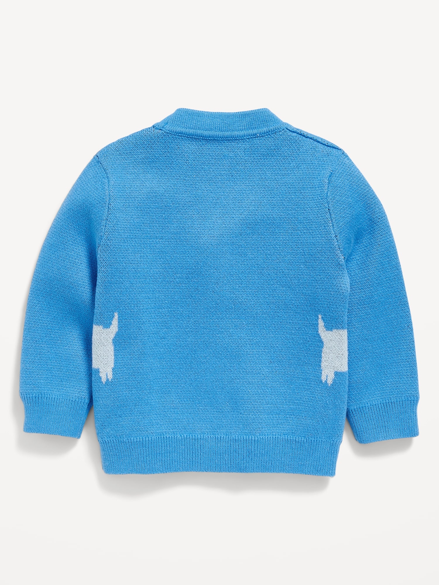 Graphic Cardigan Sweater for Baby: v neck, long sleeves, drop shoulders, four-button placket, pockets at hem, color block, #789184