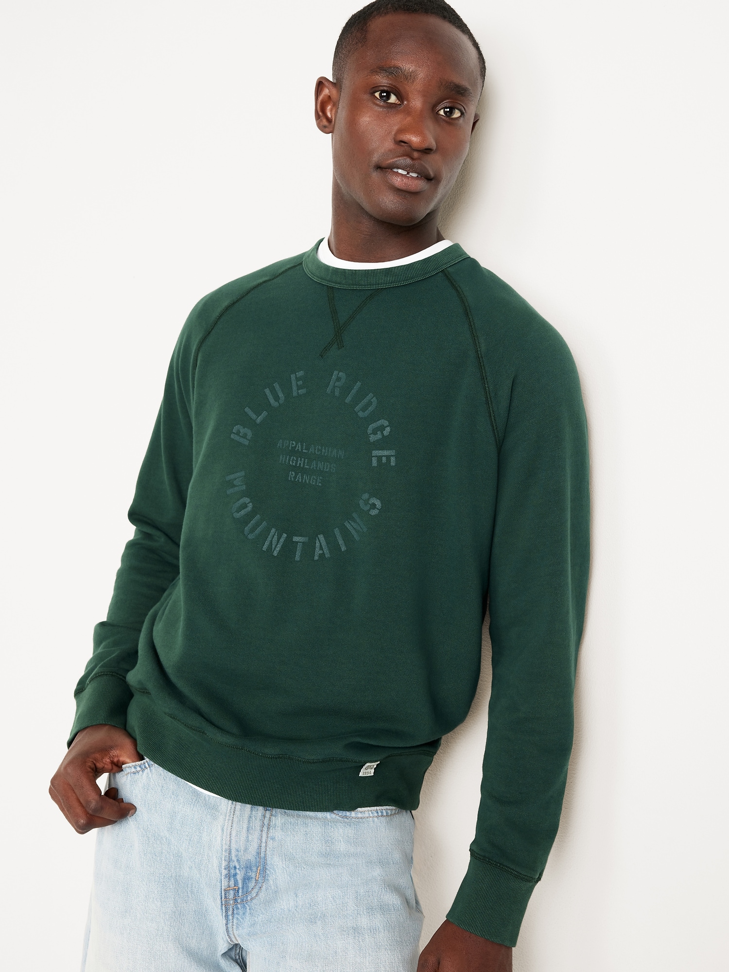 Graphic Lightweight Sweatshirt: crew neck, long raglan sleeves, rib-knit trim, pullover style, #665505
