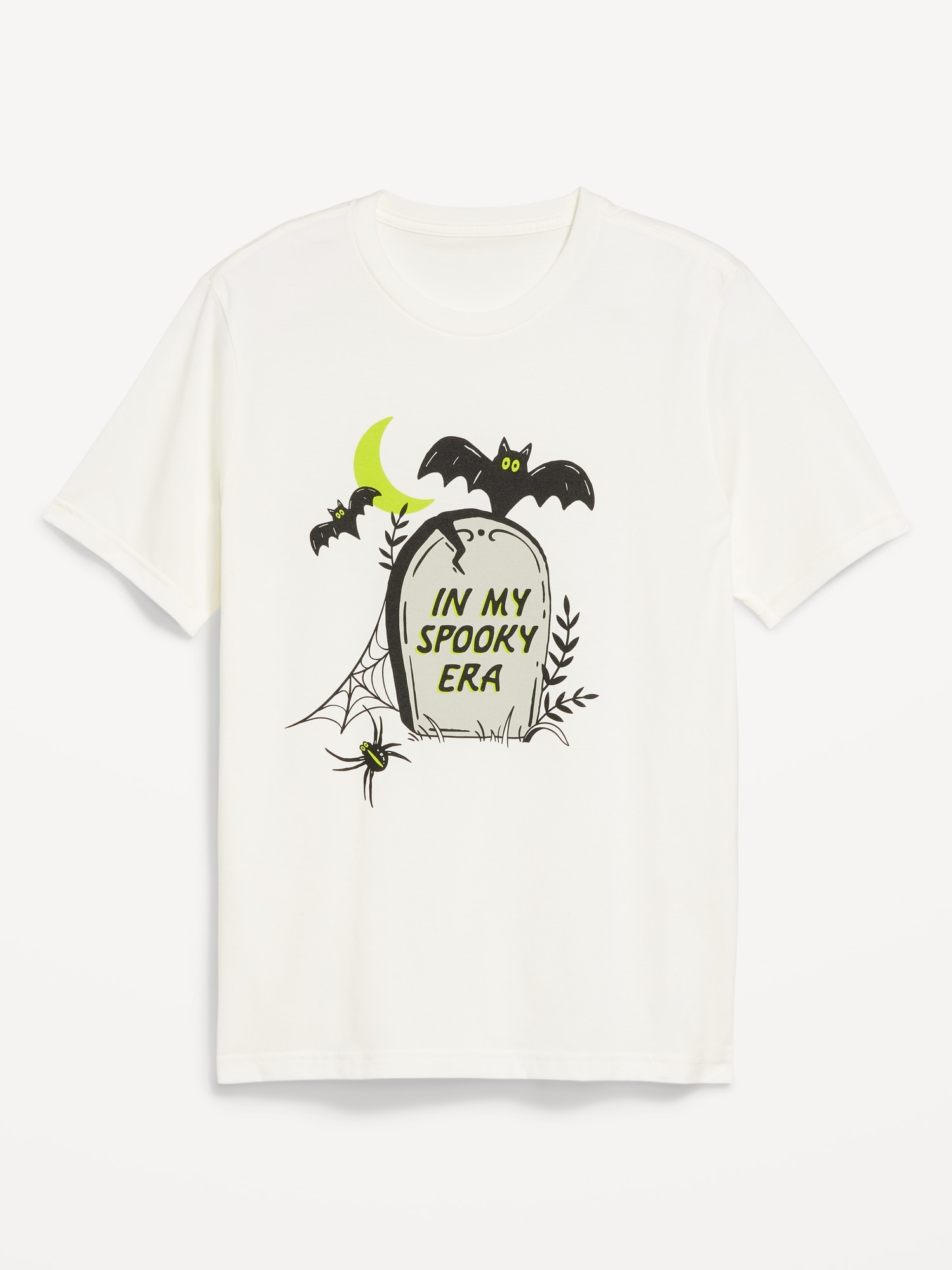 Halloween Graphic T-Shirt: rib-knit crew neck, short sleeves, graphic varies by color, #769590