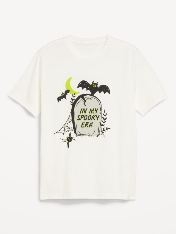 Halloween Graphic T-Shirt: rib-knit crew neck, short sleeves, graphic varies by color, #769590