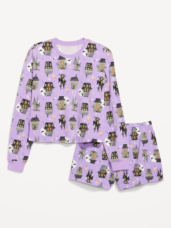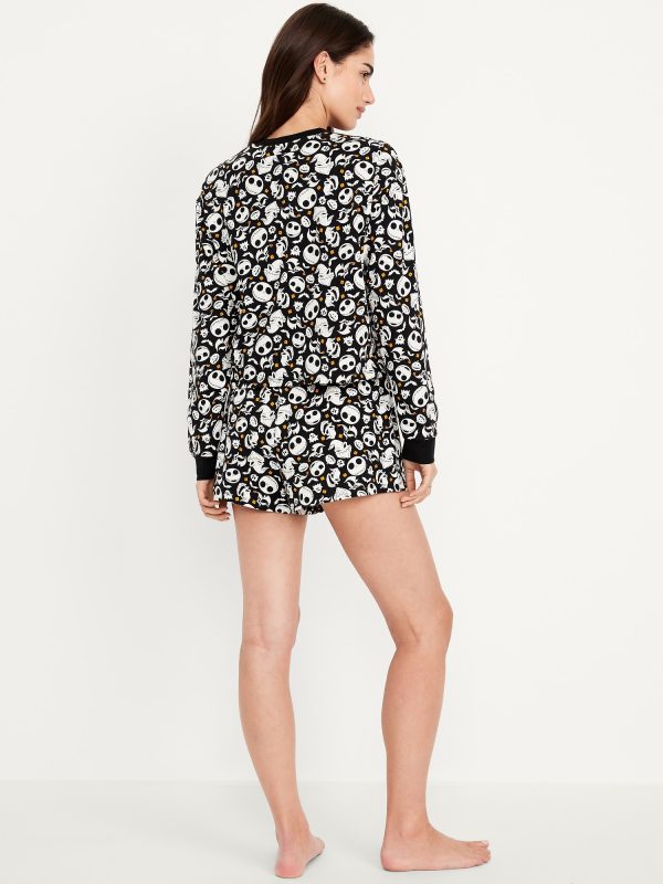 Halloween Pajama Short Set: set includes sleep top and coordinating shorts, crew neck, long drop-shoulder sleeves, elastic-waist sleep shorts, licensed graphic, © Disney, #804829