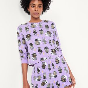 Halloween Pajama Short Set: set includes sleep top and coordinating shorts, crew neck, long drop-shoulder sleeves, elastic-waist sleep shorts, licensed graphic, © Disney, #804829
