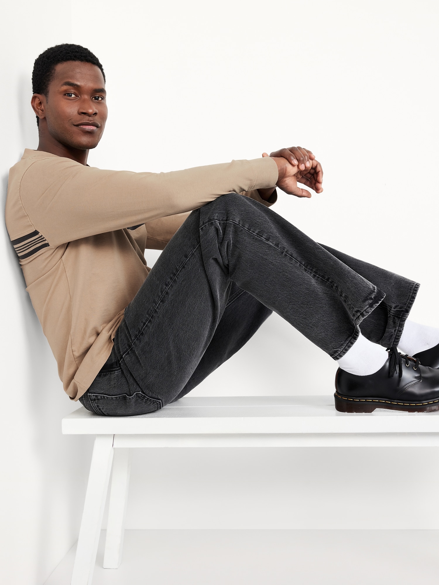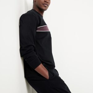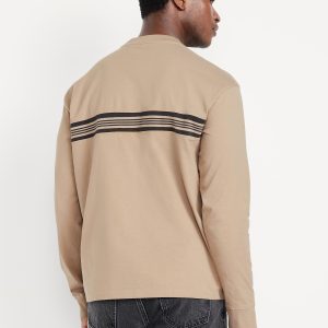 Heavyweight Chest-Stripe T-Shirt: rib-knit crew neck, long sleeves with rib-knit cuffs, contrasting chest stripes, #801794