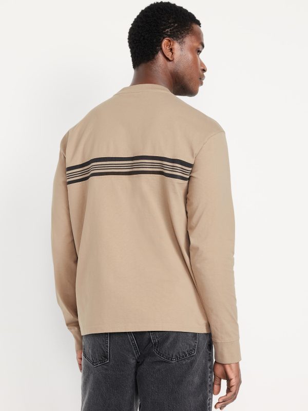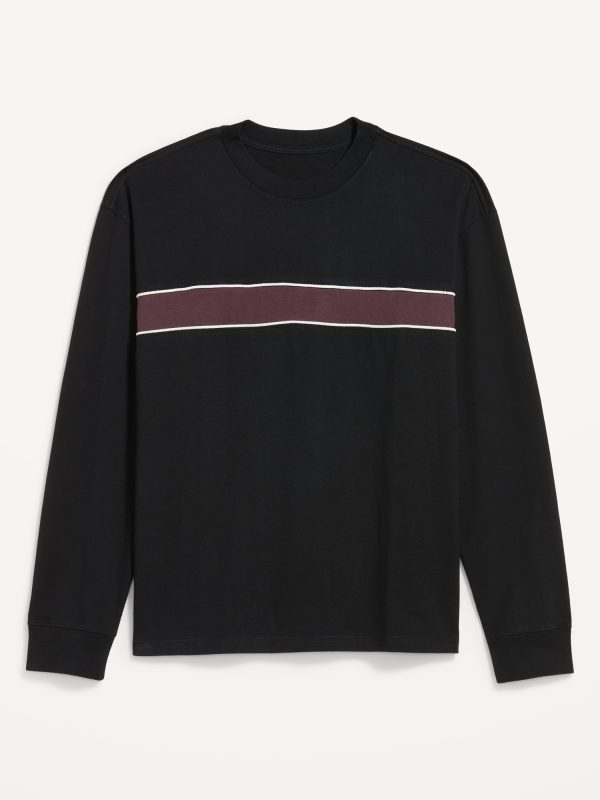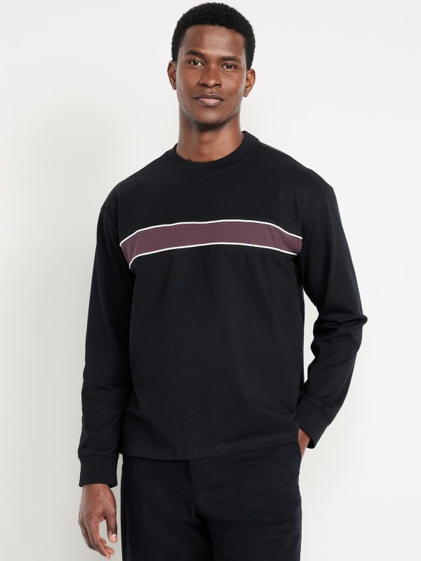 Heavyweight Chest-Stripe T-Shirt: rib-knit crew neck, long sleeves with rib-knit cuffs, contrasting chest stripes, #801794