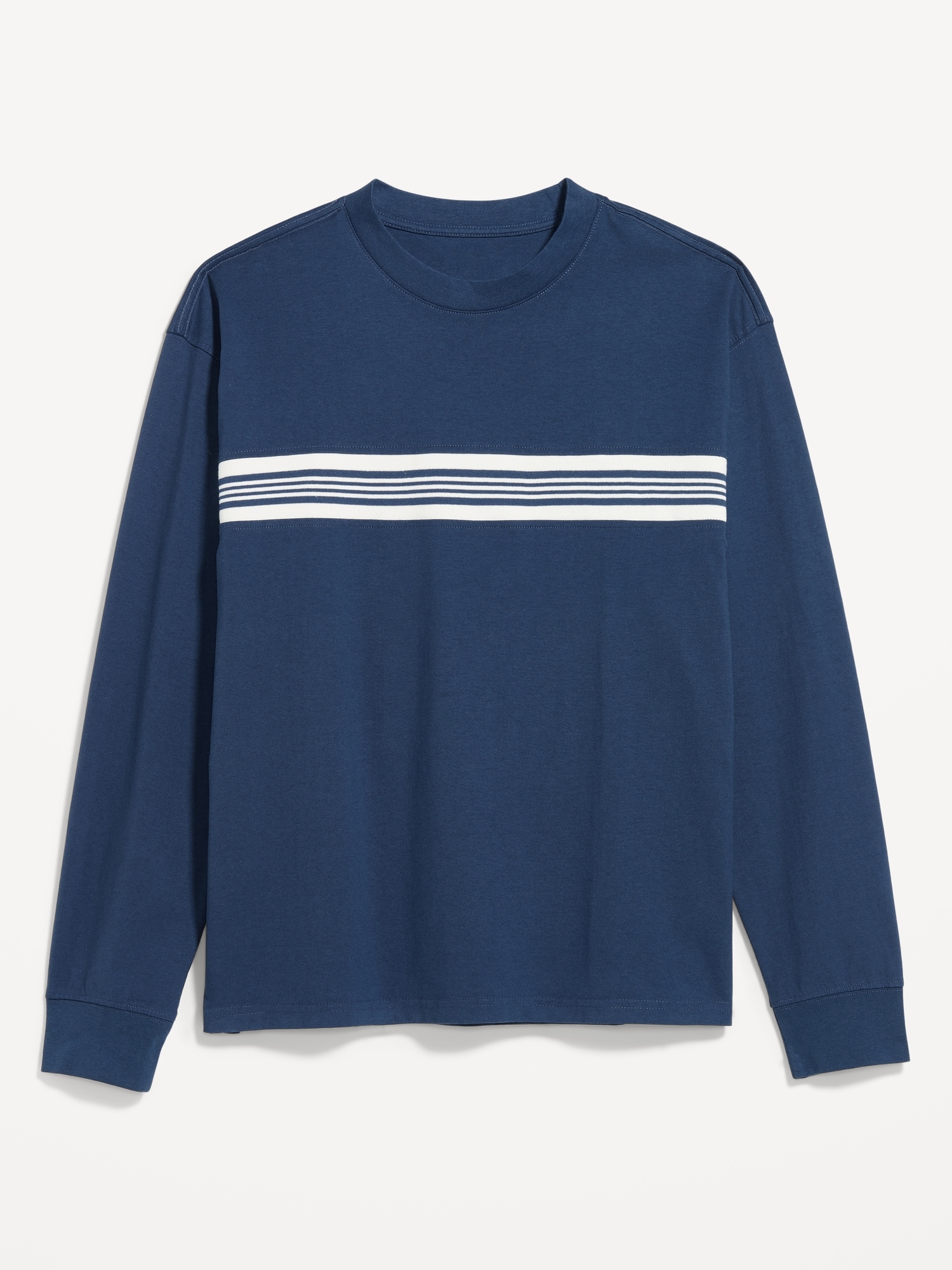 Heavyweight Chest-Stripe T-Shirt: rib-knit crew neck, long sleeves with rib-knit cuffs, contrasting chest stripes, #801794