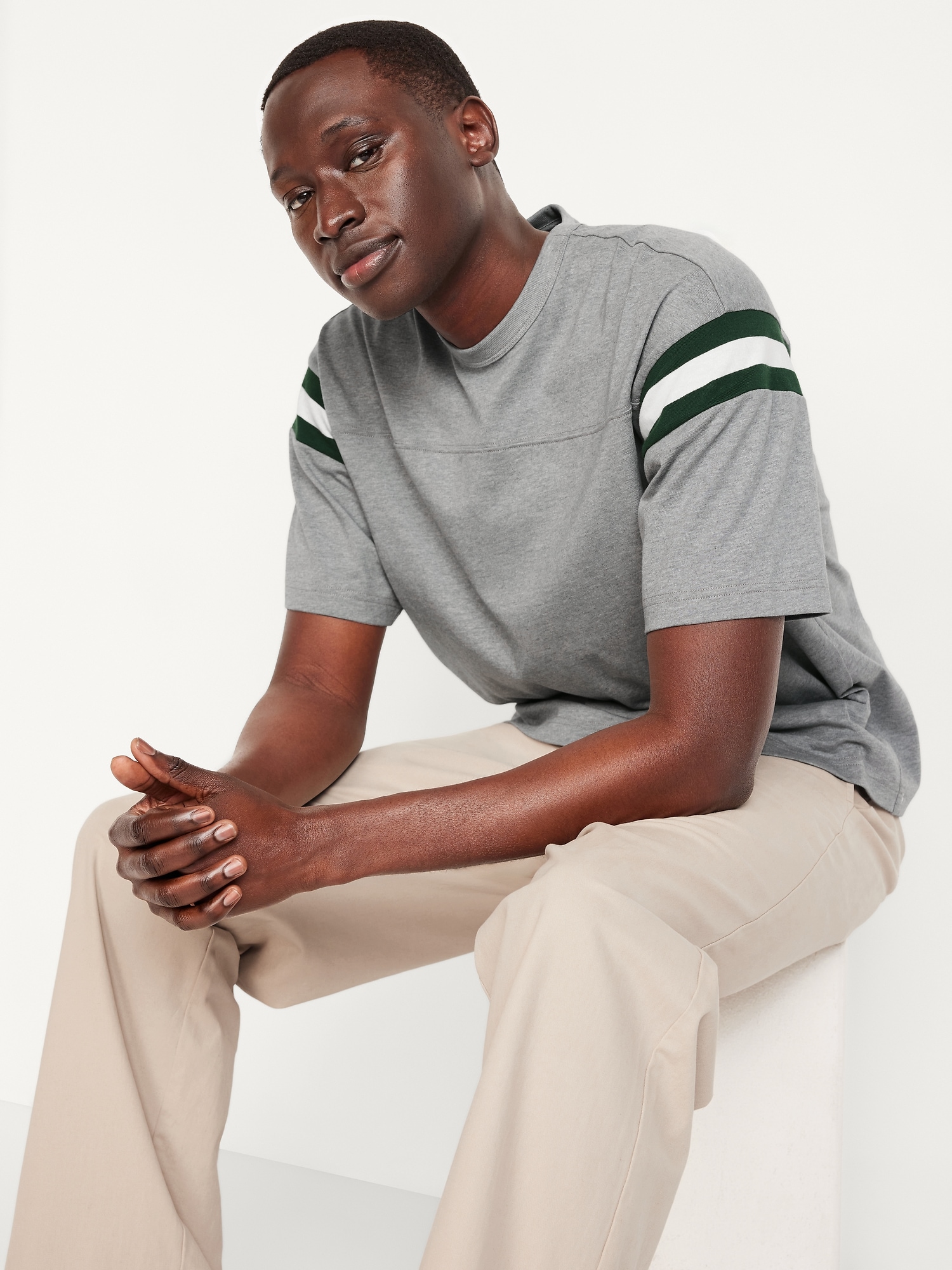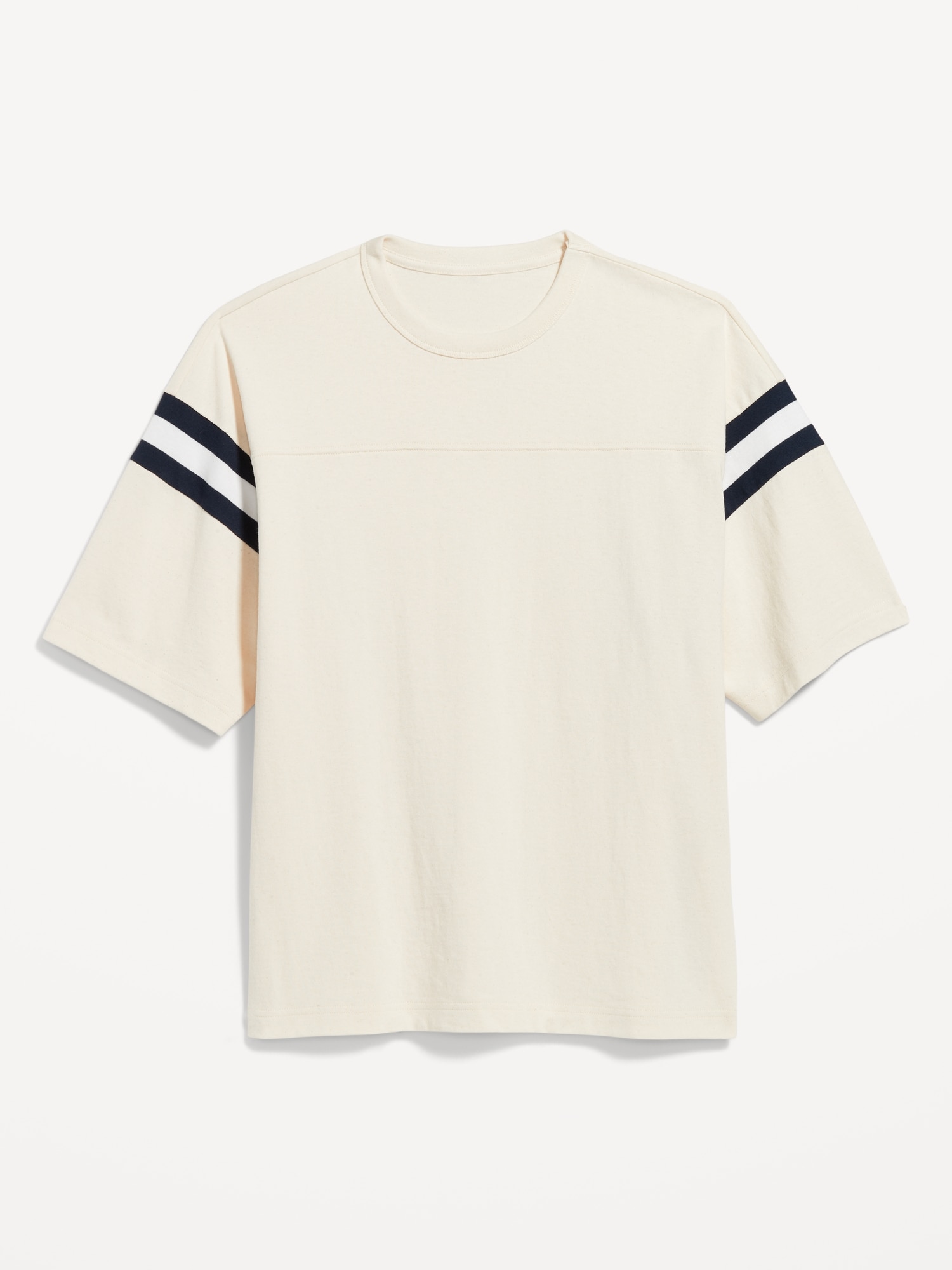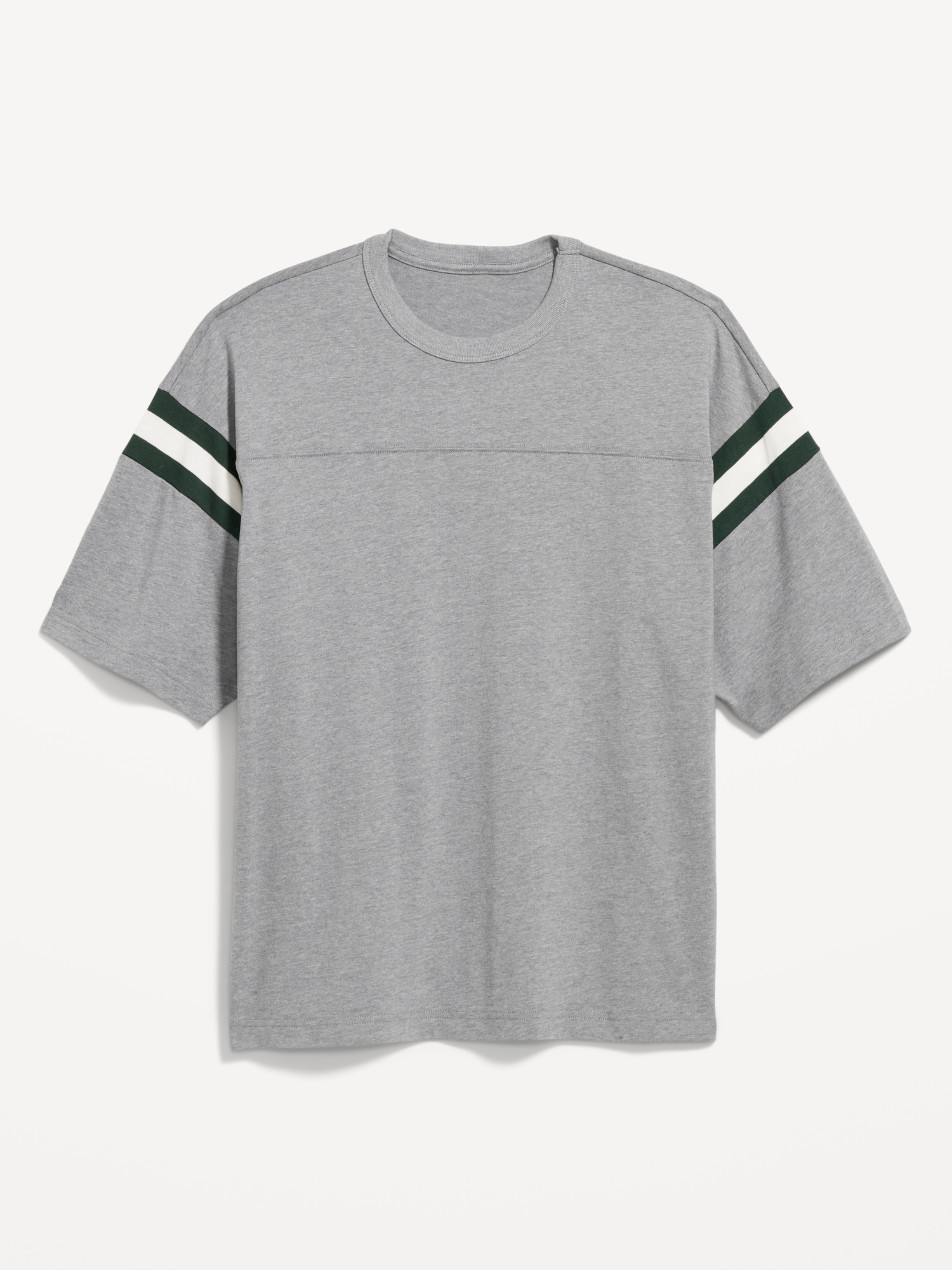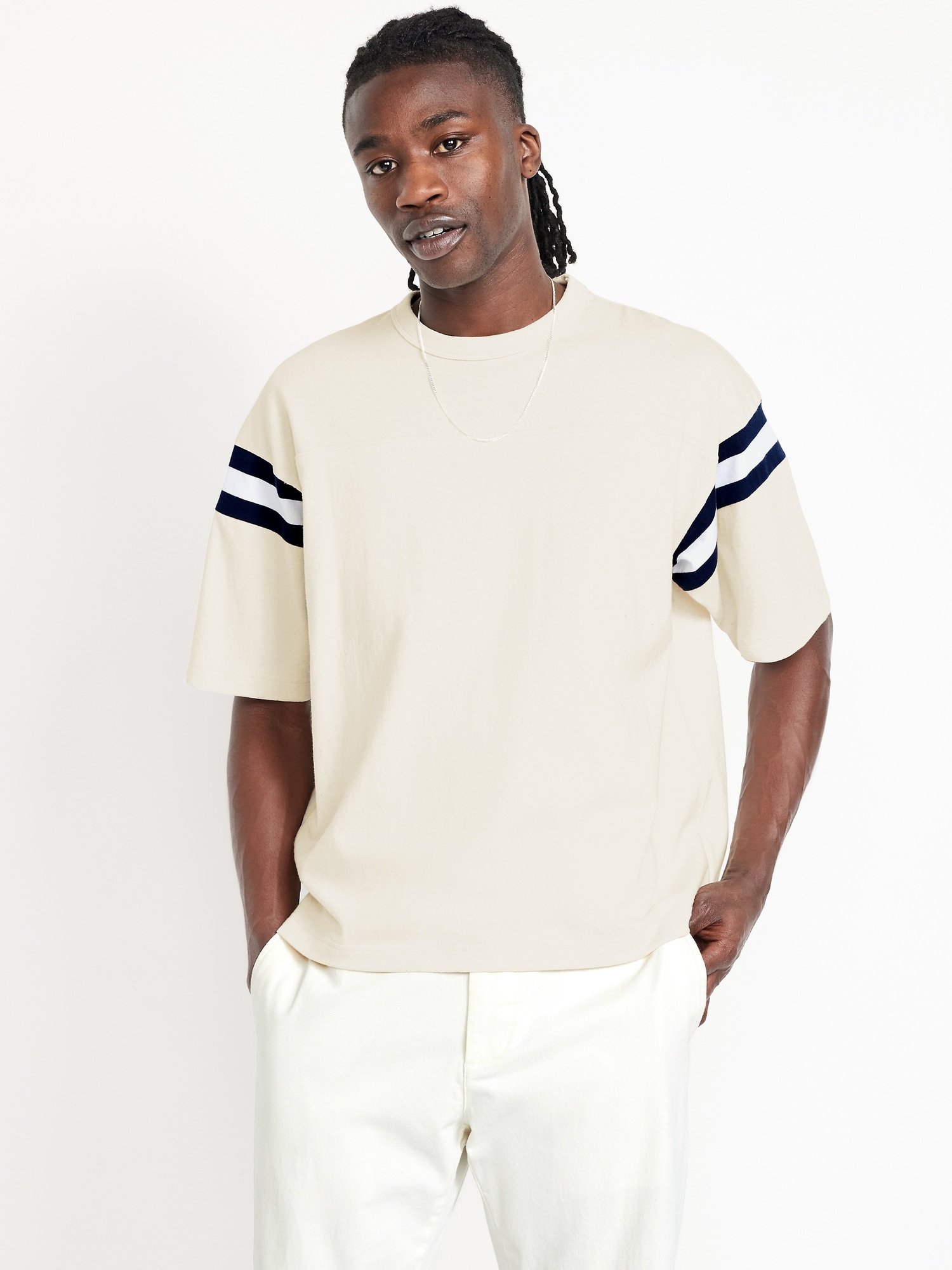 Heavyweight Football-Style T-Shirt: rib-knit crew neck, short sleeves with contrasting stripes, seamed yoke, #764263