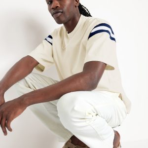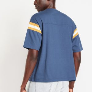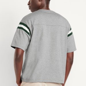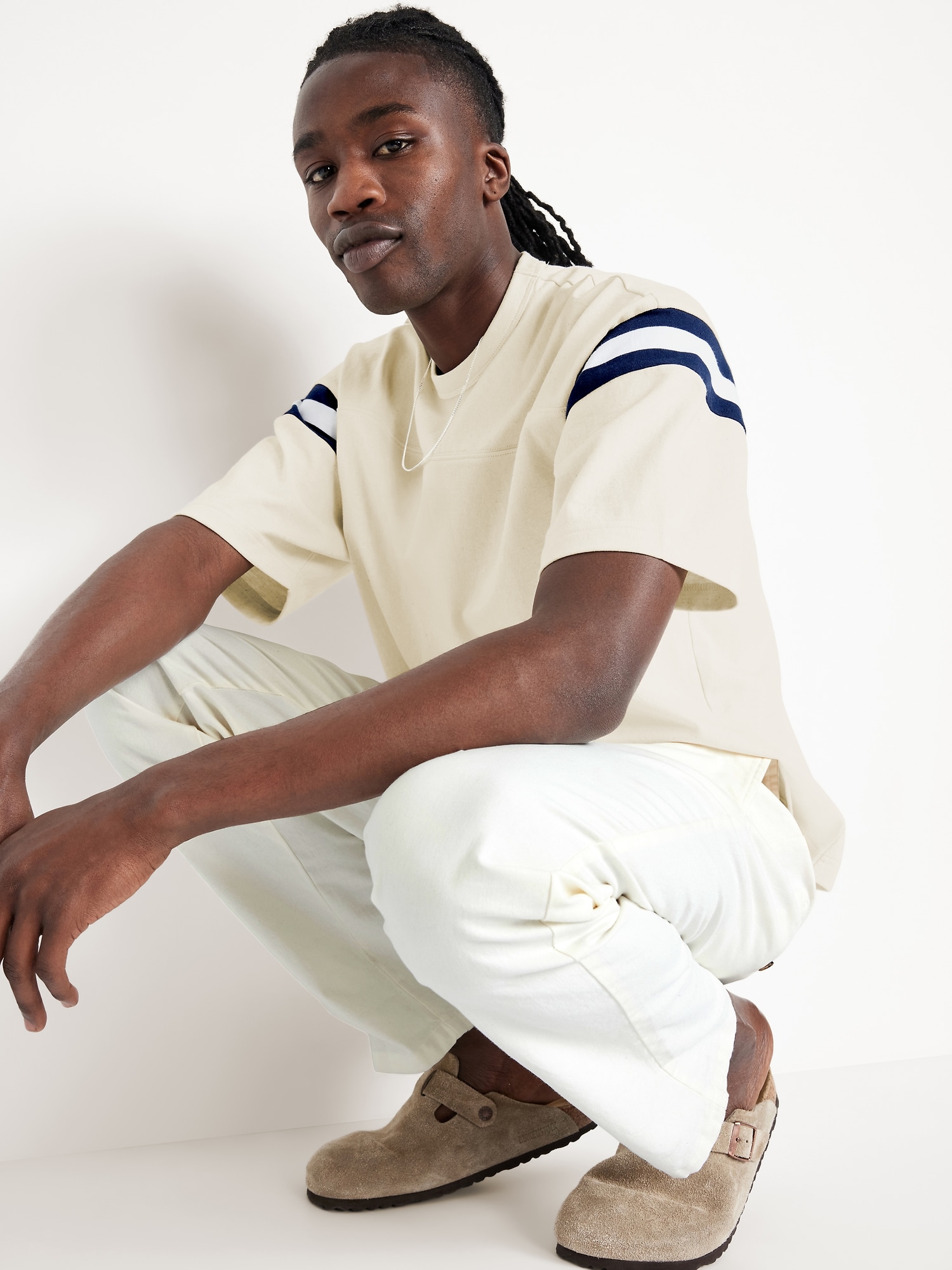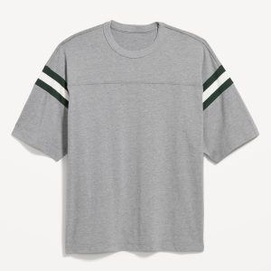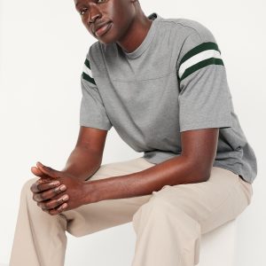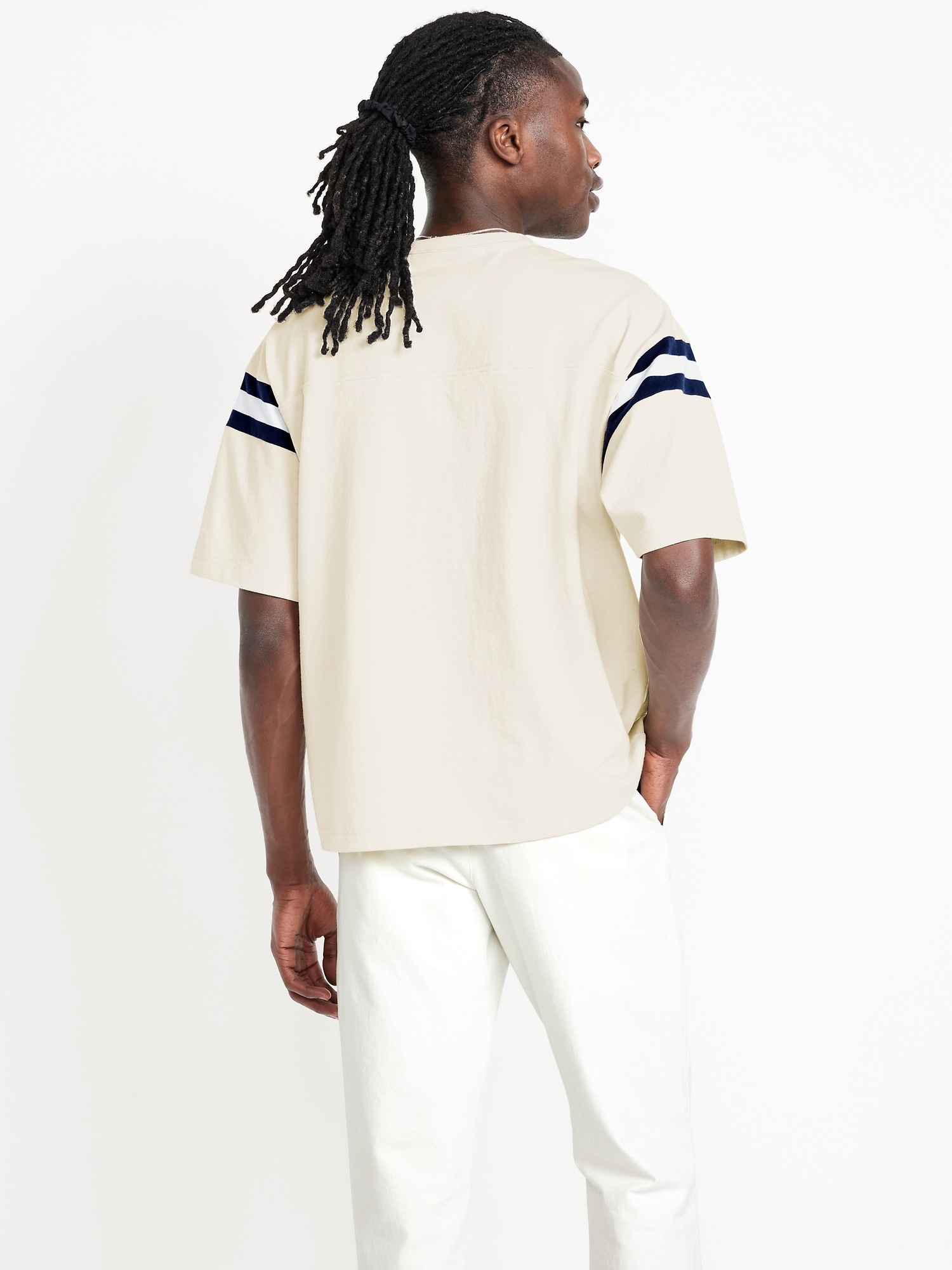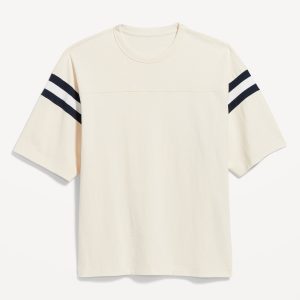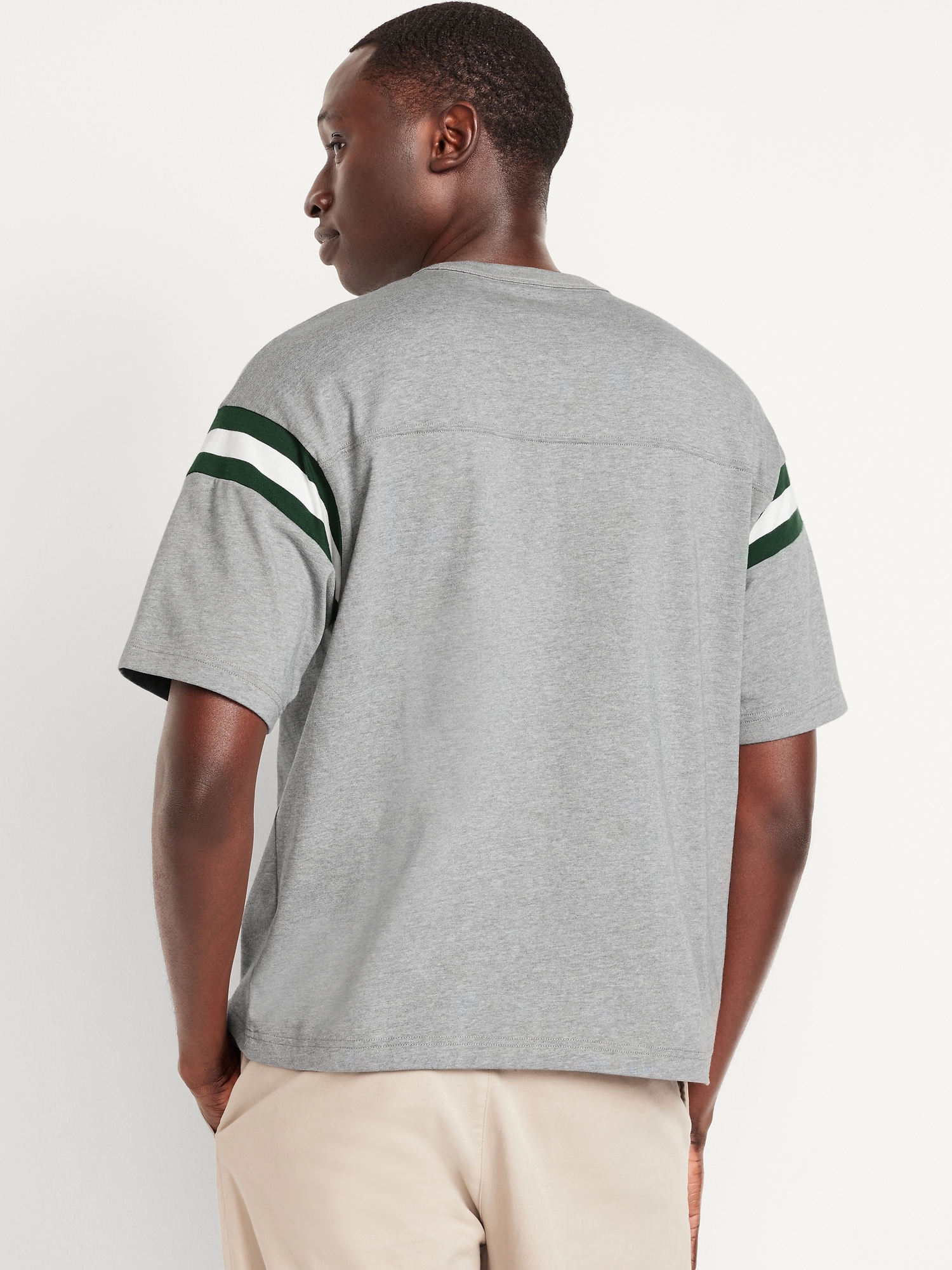 Heavyweight Football-Style T-Shirt: rib-knit crew neck, short sleeves with contrasting stripes, seamed yoke, #764263