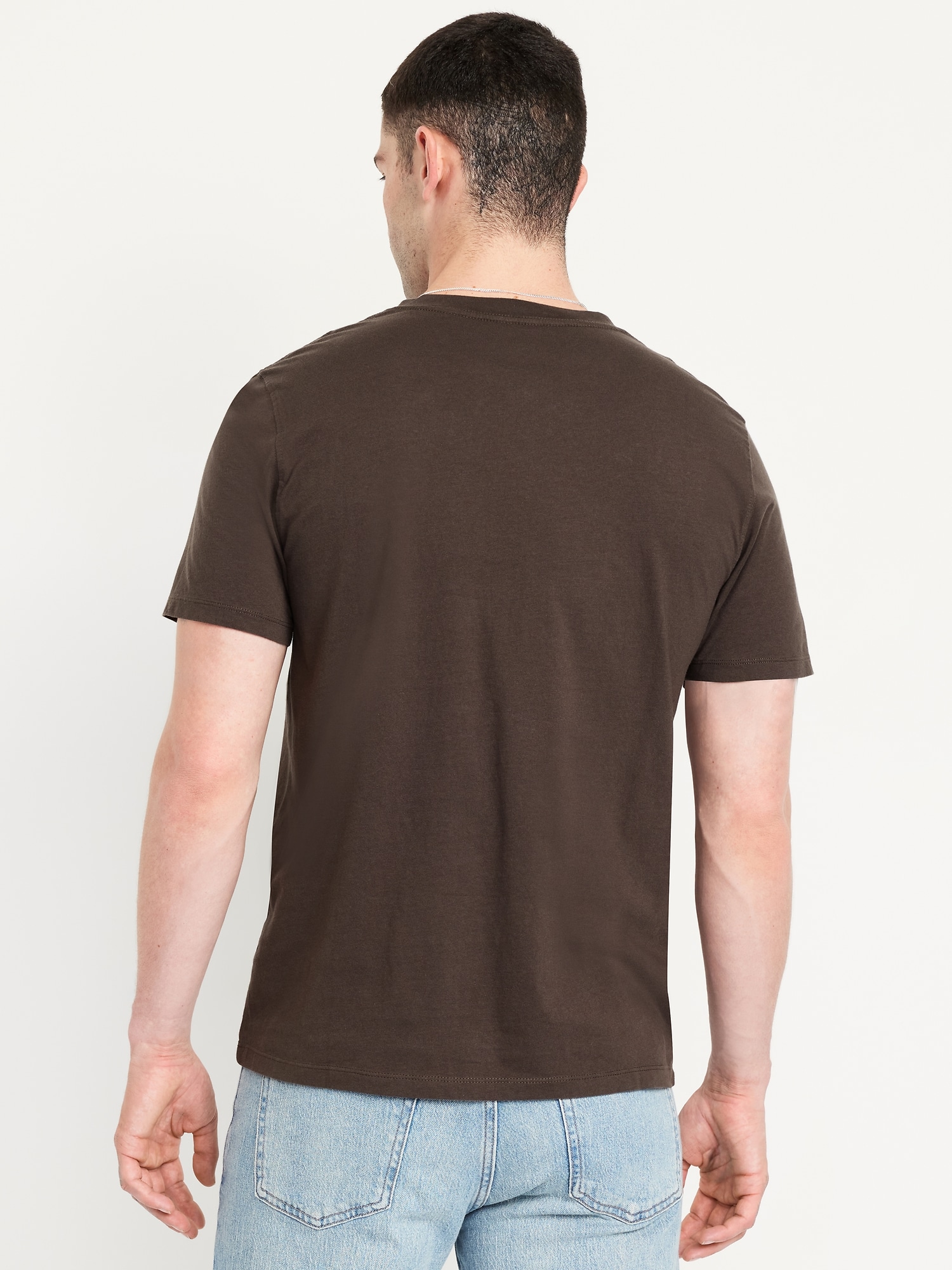 Henley T-Shirt: rib-knit crew neck, short sleeves, three-button henley placket, #687868
