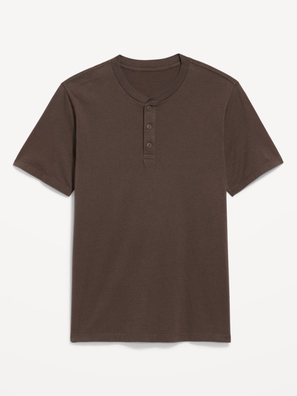 Henley T-Shirt: rib-knit crew neck, short sleeves, three-button henley placket, #687868