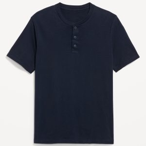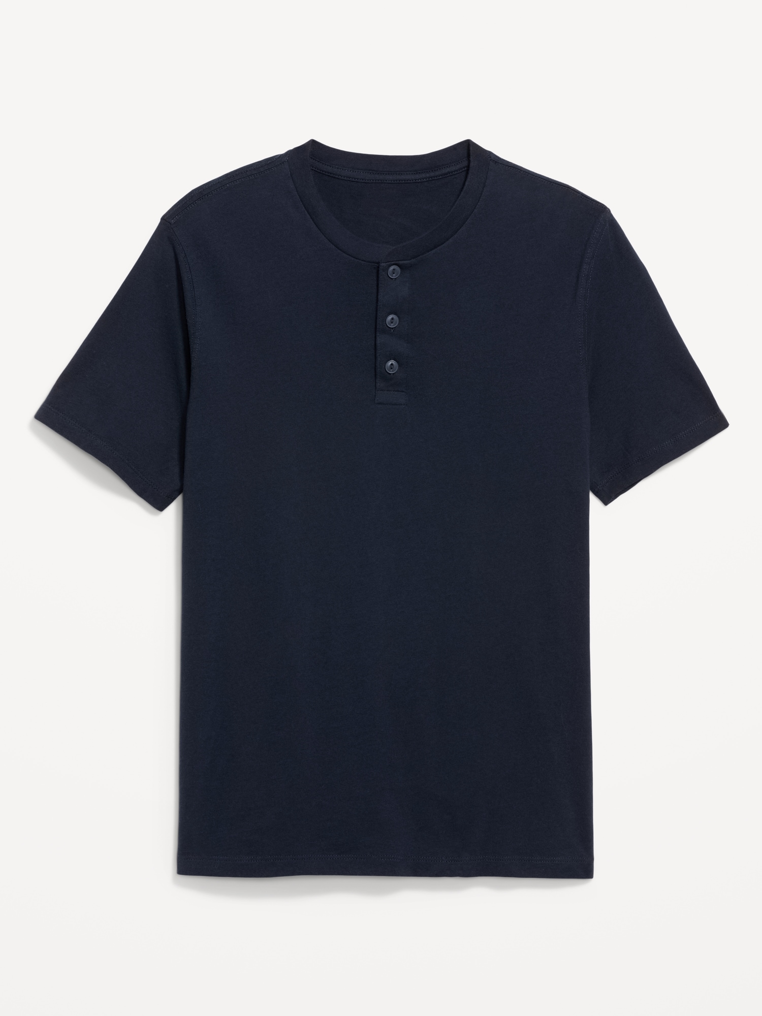 Henley T-Shirt: rib-knit crew neck, short sleeves, three-button henley placket, #687868