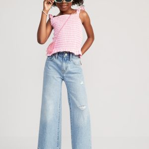 High-Waisted Baggy Ripped Wide-Leg Jeans for Girls