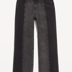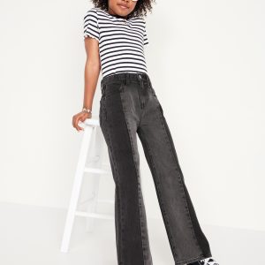 High-Waisted Baggy Two-Tone Wide-Leg Jeans for Girls