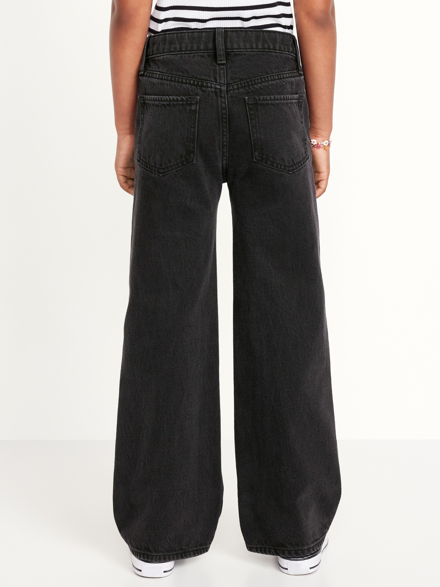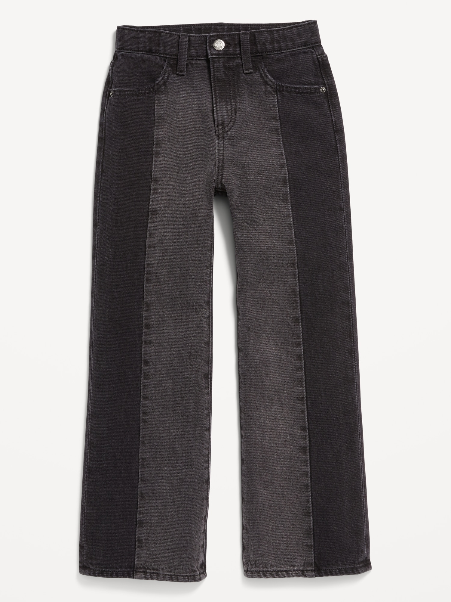 High-Waisted Baggy Two-Tone Wide-Leg Jeans for Girls: The it fits she really, really wants.interior adjustable waistband, snap button closure (sizes 5-8), regular button closure (sizes 10-20), zip fly, scoop pockets and coin pocket, patch pockets at back, wide leg opening, #803677