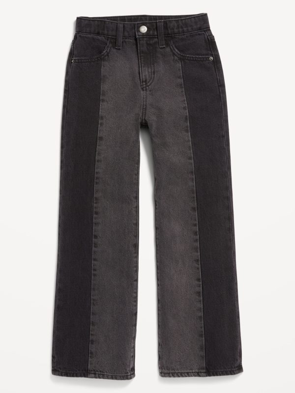 High-Waisted Baggy Two-Tone Wide-Leg Jeans for Girls