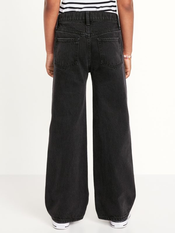 High-Waisted Baggy Two-Tone Wide-Leg Jeans for Girls: The it fits she really, really wants.interior adjustable waistband, snap button closure (sizes 5-8), regular button closure (sizes 10-20), zip fly, scoop pockets and coin pocket, patch pockets at back, wide leg opening, #803677