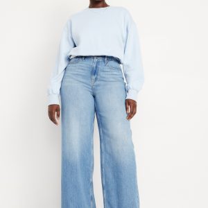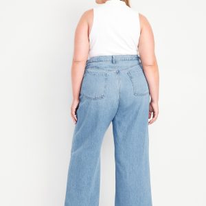 High-Waisted Baggy Wide-Leg Jeans: The oversized wide-leg jean of your teenage dreams.studded accent at sides, high waist, zip fly, #800683