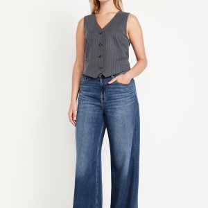 High-Waisted Baggy Wide-Leg Jeans: The oversized wide-leg jean of your teenage dreams.studded accent at sides, high waist, zip fly, #800683