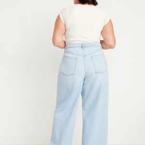 High-Waisted Baggy Wide-Leg Jeans: The oversized wide-leg jean of your teenage dreams.studded accent at sides, high waist, zip fly, #800683