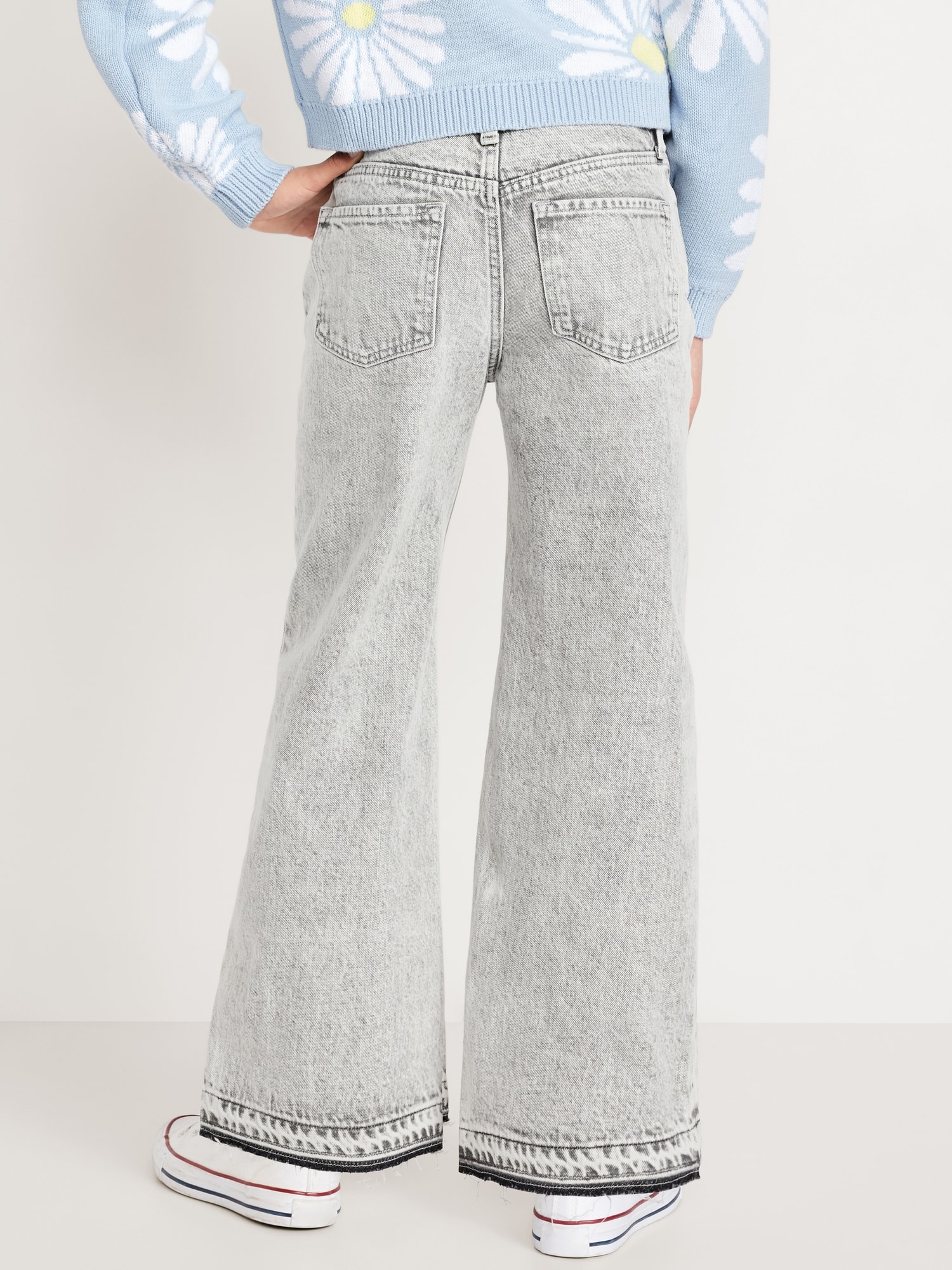 High-Waisted Baggy Wide-Leg Jeans for Girls: The it fits she really, really wants.interior adjustable waistband, snap button closure (sizes 5-8), regular button closure (sizes 10-20), zip fly, scoop pockets and coin pocket, patch pockets at back, wide leg opening, #803677