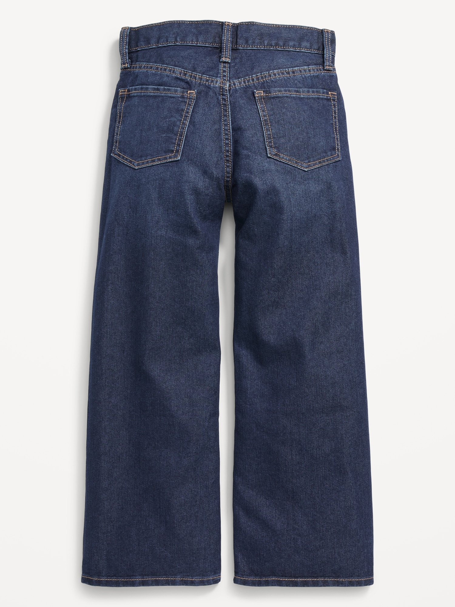 High-Waisted Baggy Wide-Leg Jeans for Girls: The it fits she really, really wants.interior adjustable waistband, snap button closure (sizes 5-8), regular button closure (sizes 10-20), zip fly, scoop pockets and coin pocket, patch pockets at back, wide leg opening, #803677