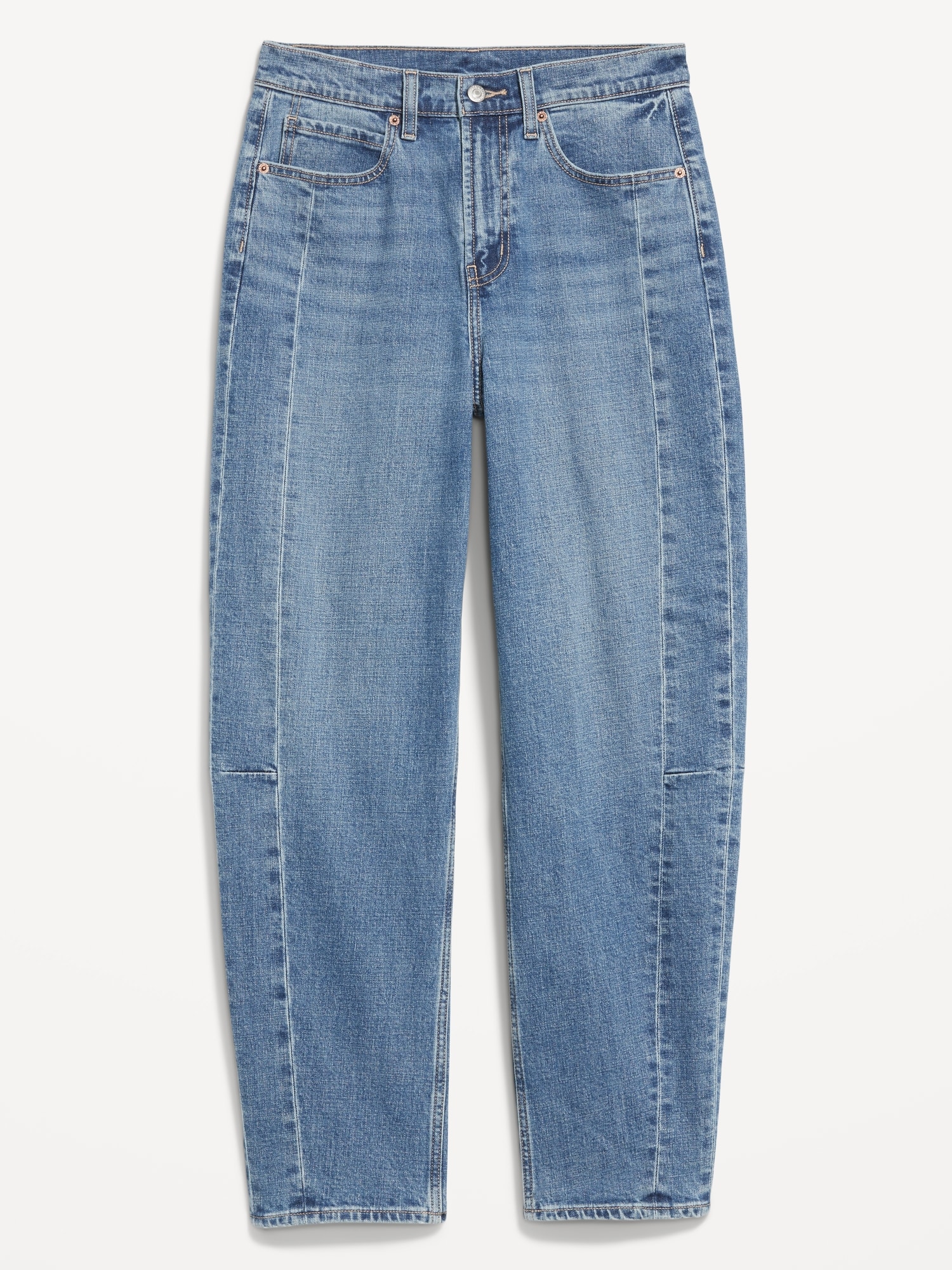 High-Waisted Barrel Ankle Jeans: A curved, tapered leg and proportion play from hip to hem.high waisted, zip fly, seamed barrel leg, #804566