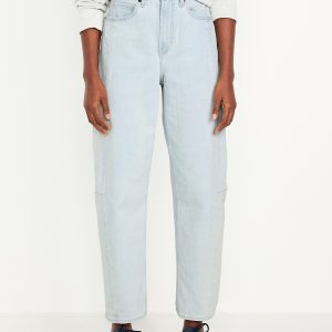 High-Waisted Barrel Ankle Jeans: A curved, tapered leg and proportion play from hip to hem.high waisted, zip fly, seamed barrel leg, #804566