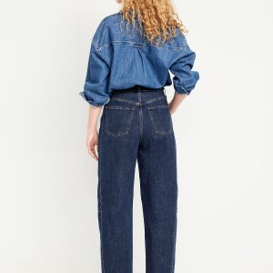 High-Waisted Barrel Ankle Jeans: A curved, tapered leg and proportion play from hip to hem.high waisted, zip fly, seamed barrel leg, #804566