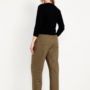 High-Waisted Barrel Ankle Pants: The effortless curved shape that’s so hot right now.comfort-elastic pull-on waistband, diagonal front pockets, back patch pockets, darted knee, seamed leg, #801608