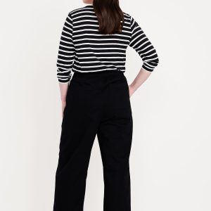 High-Waisted Barrel Ankle Pants: The effortless curved shape that’s so hot right now.comfort-elastic pull-on waistband, diagonal front pockets, back patch pockets, darted knee, seamed leg, #801608