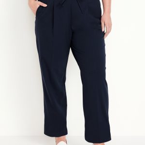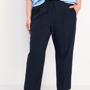 High-Waisted Billie Straight Ankle Trouser: A pleated pull-on pant for work and play.comfort elastic-drawstring waist, hip pockets, back right welt pocket, #799291