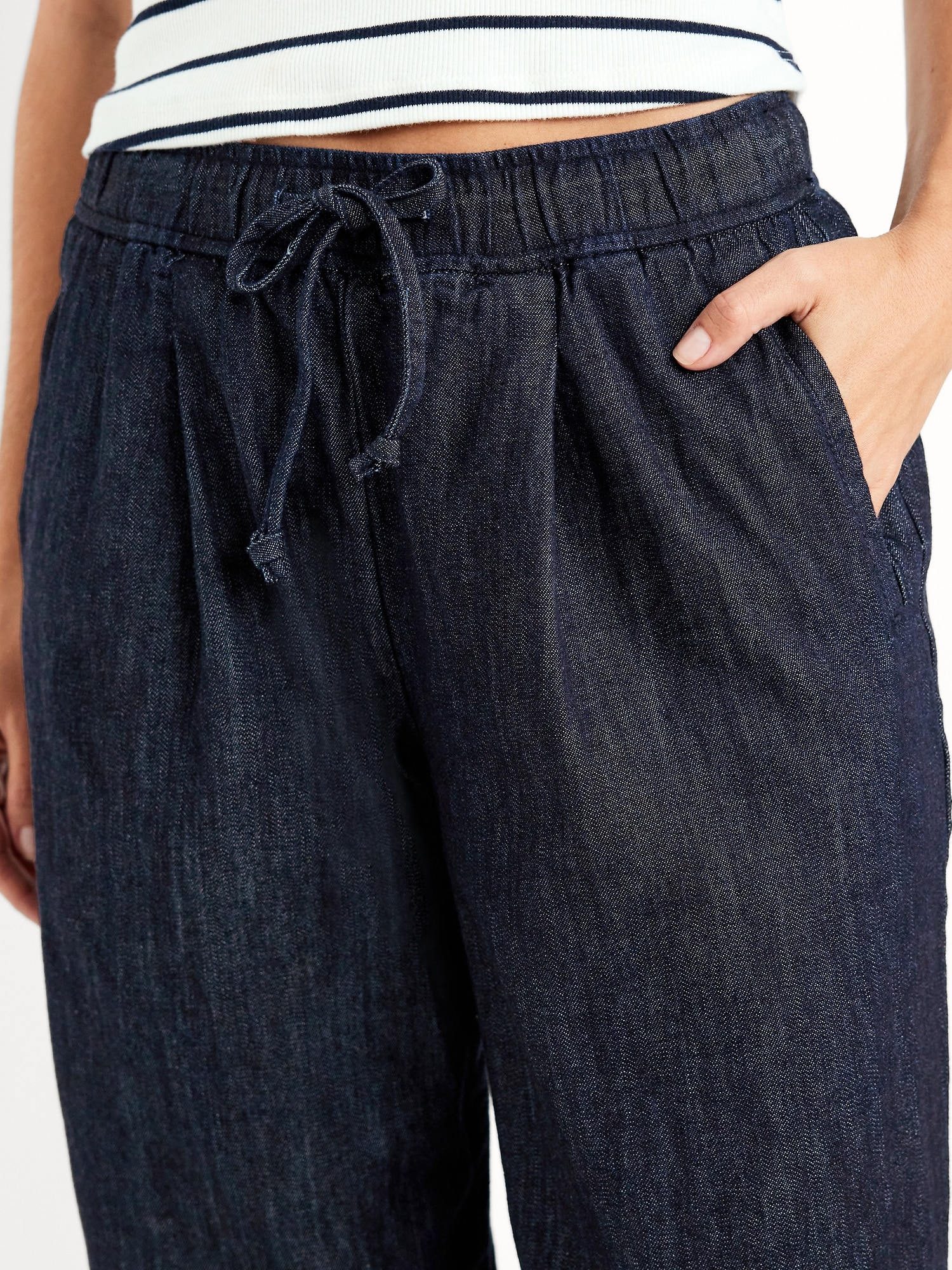 High-Waisted Billie Straight Ankle Trouser: A pleated pull-on pant for work and play.comfort elastic-drawstring waist, hip pockets, back right welt pocket, #799291