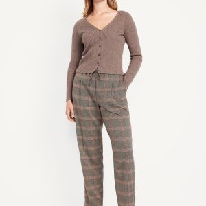 High-Waisted Billie Straight Plaid Ankle Trouser: A pleated pull-on pant for work and play.comfort elastic-drawstring waist, hip pockets, back right welt pocket, #799291