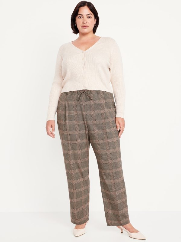 High-Waisted Billie Straight Plaid Ankle Trouser: A pleated pull-on pant for work and play.comfort elastic-drawstring waist, hip pockets, back right welt pocket, #799291