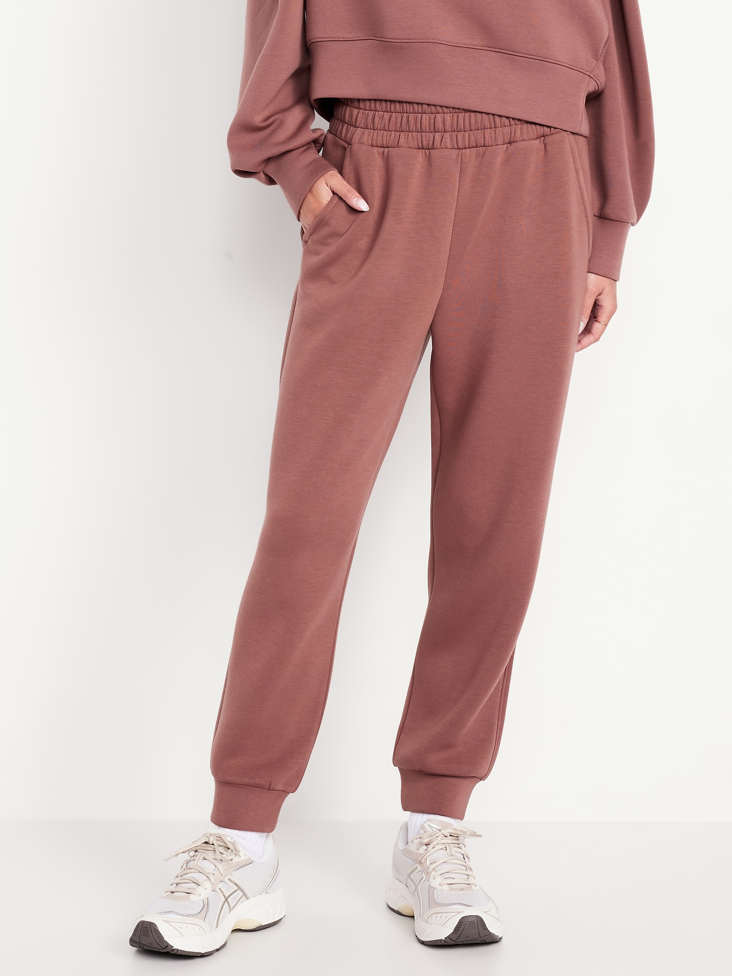 High-Waisted Bounce Fleece Jogger Sweatpants: Featuring Bounce Fleece. A smooth, cooling finish that feels good and looks chic everywhere you go.elasticized waistband, diagonal hip pockets, breathable, pull-on style, #766362
