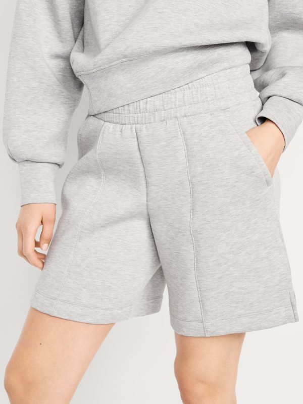 High-Waisted Bounce Fleece Shorts — 8-inch inseam: Featuring Bounce Fleece. A smooth, cooling finish that feels good and looks chic everywhere you go.elastic waistband, breathable, pull-on style, #764339