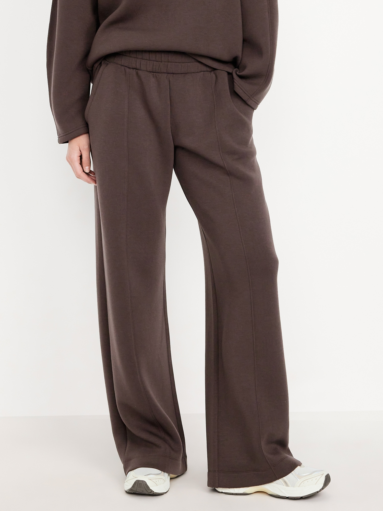 High-Waisted Bounce Fleece Wide-Leg Sweatpants: Featuring Bounce Fleece. A smooth, cooling finish that feels good and looks chic everywhere you go.elasticized waist, hip pockets, seamed front leg, pull-on style, breathable, #583458