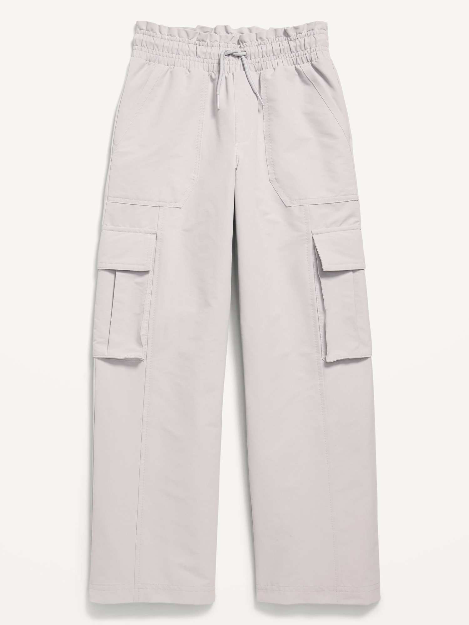 High-Waisted Cargo Wide-Leg Performance Pants for Girls: high rise, elasticized ruffled waistband, functional drawstring, diagonal on-seam pocket, flap cargo pockets, wide leg, #802737
