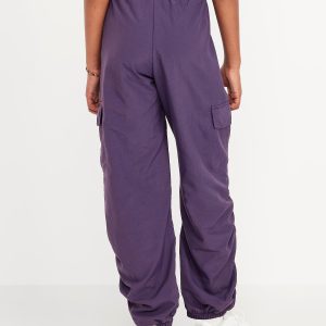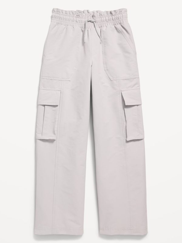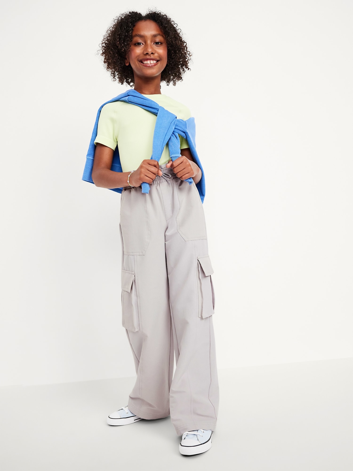 High-Waisted Cargo Wide-Leg Performance Pants for Girls: high rise, elasticized ruffled waistband, functional drawstring, diagonal on-seam pocket, flap cargo pockets, wide leg, #802737
