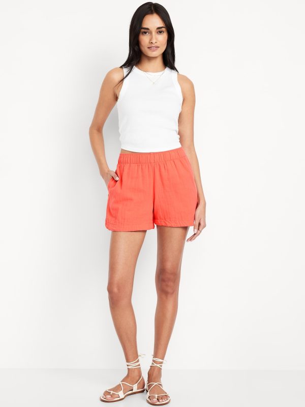 High-Waisted Crinkle Gauze Shorts — 4-inch inseam